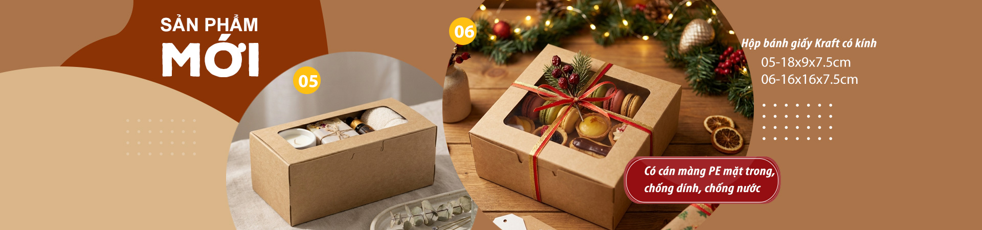 Hộp bánh giấy Kraft có kính – 05-18x9x7.5cm