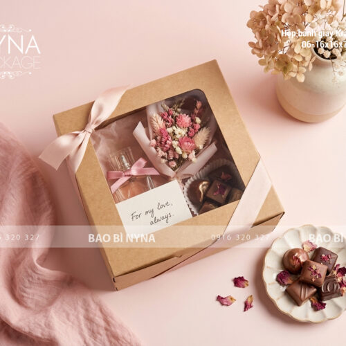Hộp bánh giấy Kraft có kính – 06-16x16x7.5cm