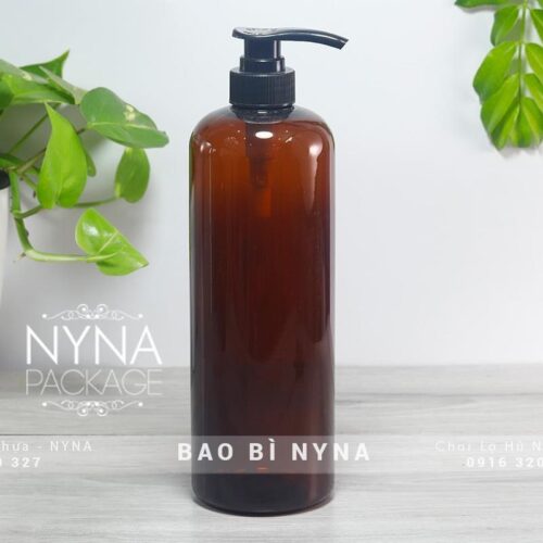Chai nâu 500ml vai ngang vòi nhấn đen