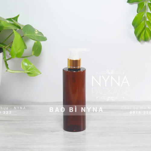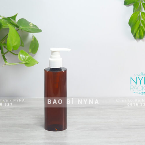 Chai nâu 200ml vai ngang vòi nhấn đen P24