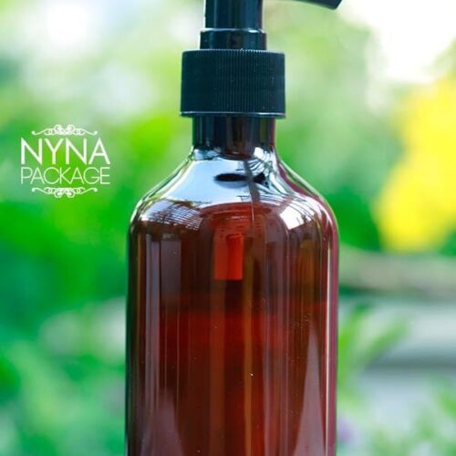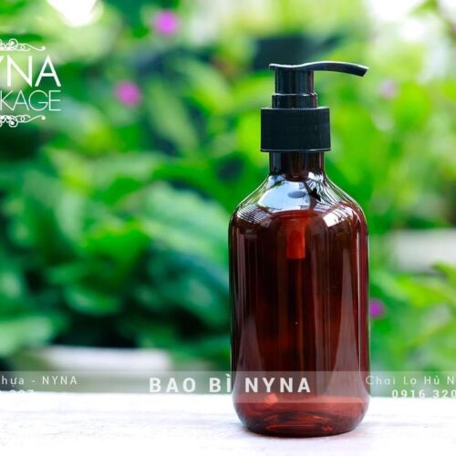 Chai nâu 300ml cổ cao Vòi nhấn đen P28