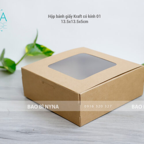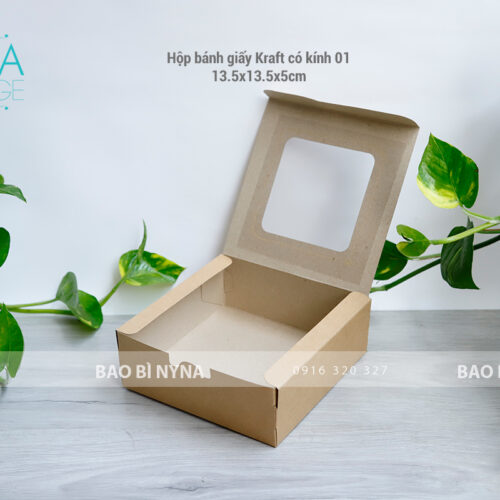 – Hộp bánh giấy Kraft có kính – 01 – 13.5×13.5x5cm
