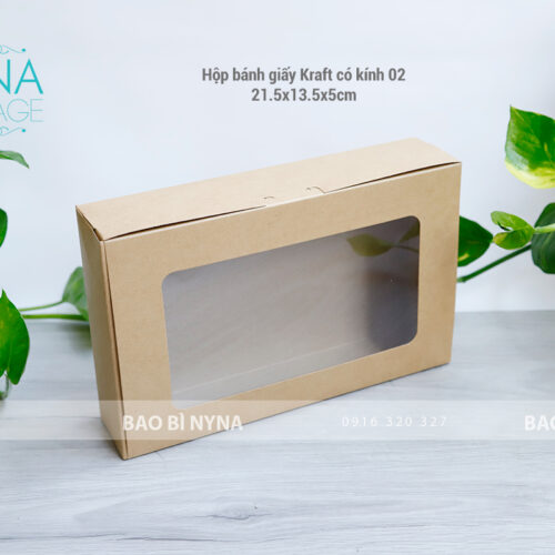 – Hộp bánh giấy Kraft có kính – 02 – 21.5×13.5x5cm