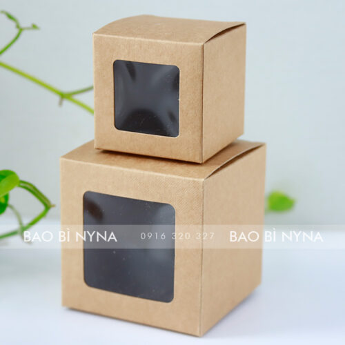 – Chất liệu giấy Kraf nâu, có cửa sổ không kính.