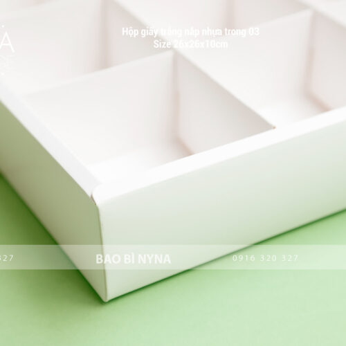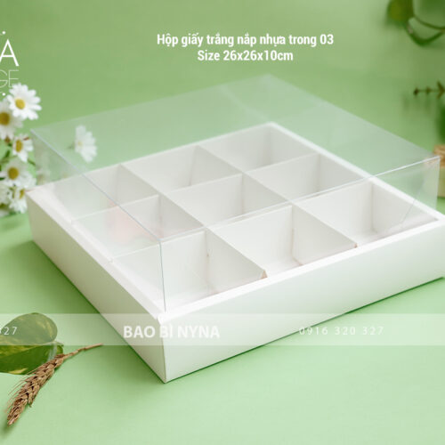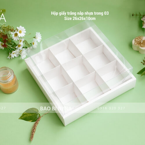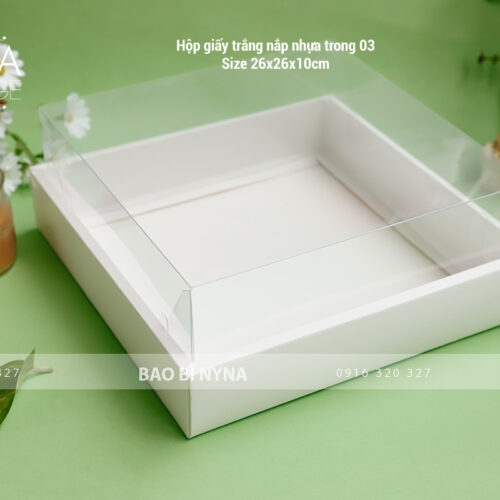 Hộp giấy trắng nắp nhựa trong 03 - 26x26x10cm
