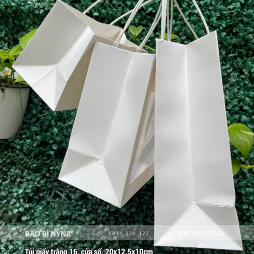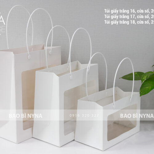 Túi giấy trắng có kính, kèm quai trắng