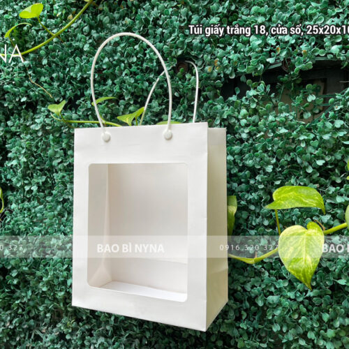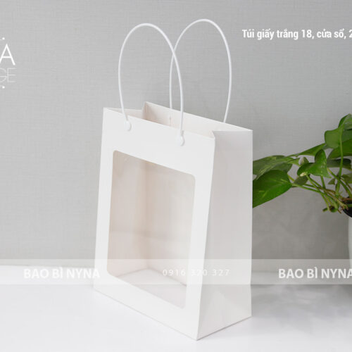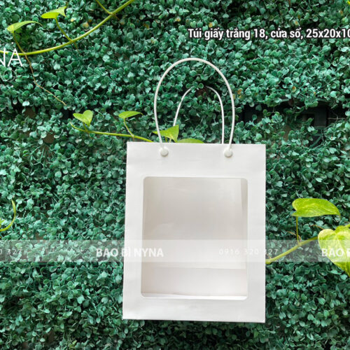 Túi giấy trắng 18, cửa sổ, 25x20x10cm